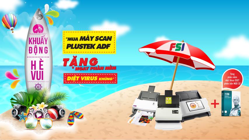 Từ ngày 15/05/2018 – 15/06/2018, FSI triển khai chương trình khuyến mại khuấy động hè vui “Mua máy scan Plustek ADF tặng ngay phần mềm